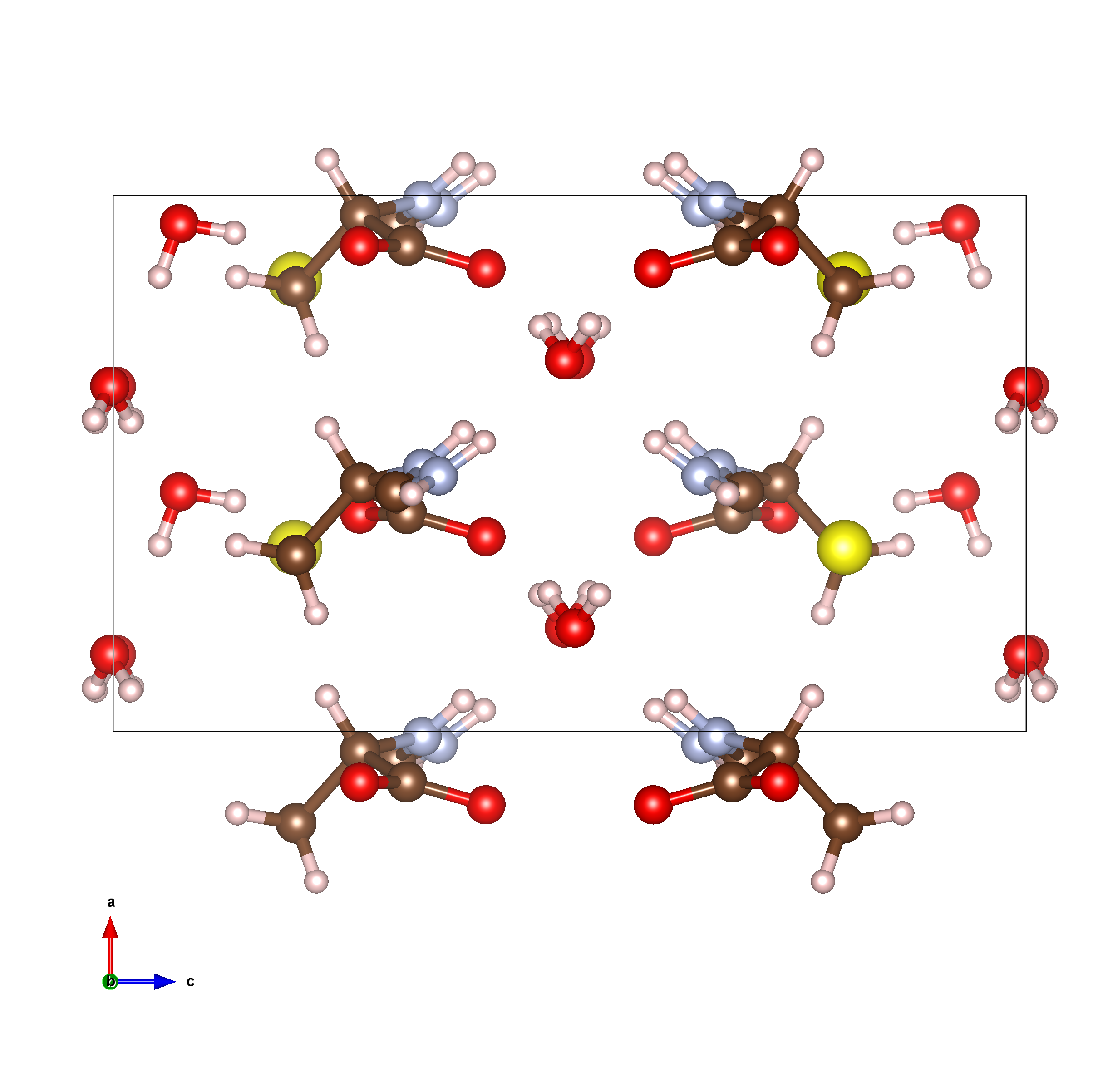 Crystal Name: DL-2-Amino-2-thiazoline-4-carboxylic acid trihydrate Chemical Formula: C4H6N2O2S1,3(H2O1) H-M Space Group: P21ab