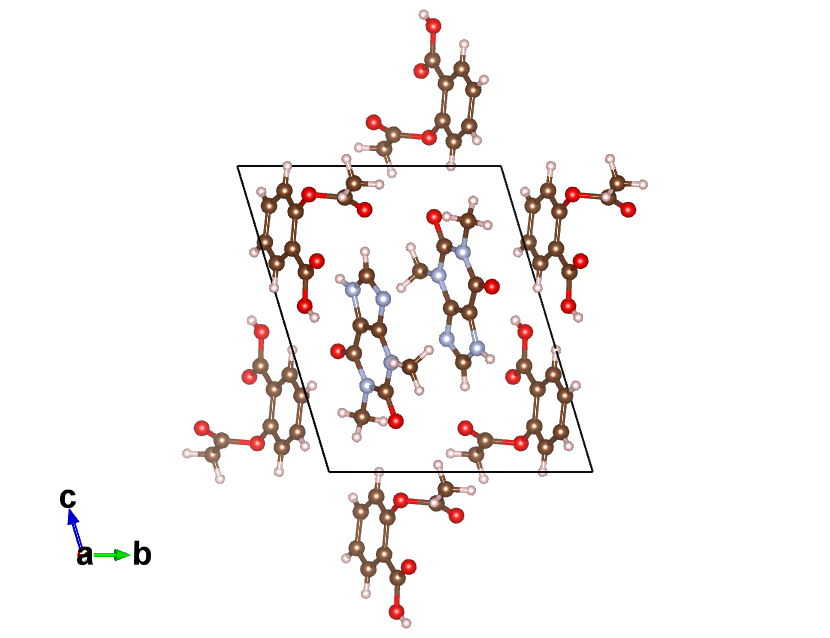 Crystal Name: 2-(acetyloxy)benzoic acid 1,3-dimethyl-3,7-dihydro-1H-purine-2,6-dione Chemical Formula: 1 H-M Space Group: P-1