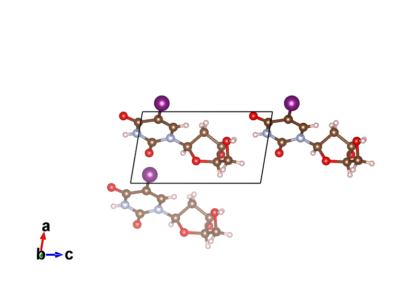 Crystal Name: 1-(4-hydroxy-5-(hydroxymethyl)tetrahydrofuran-2-yl)-5-iodopyrimidine-2,4(1H,3H)-dione Chemical Formula: 1 H-M Space Group: P1